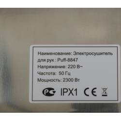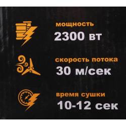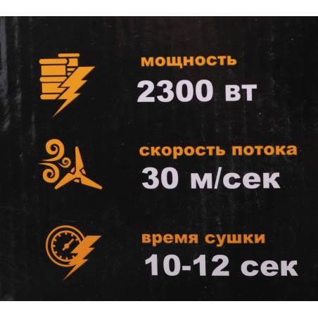 - автоотключение, нержавеющая сталь, бесшумная работа сенсора, изменение положения раструба, противопожарная защита, защита от перегрева, использовать сушилку в качестве фена