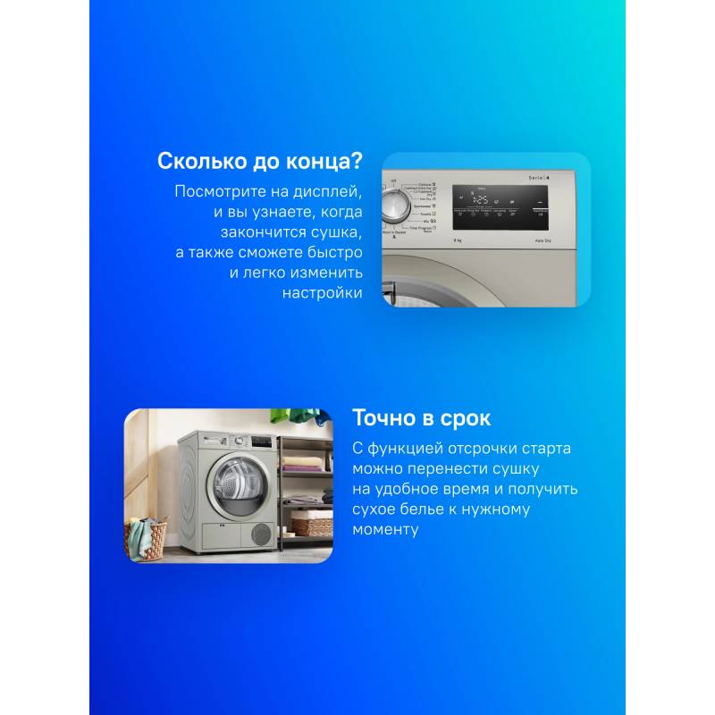 Сушильная машина Bosch Serie 4 WTN86202ME пан.англ. кл.энер.:A макс.загр.:8кг серебристый