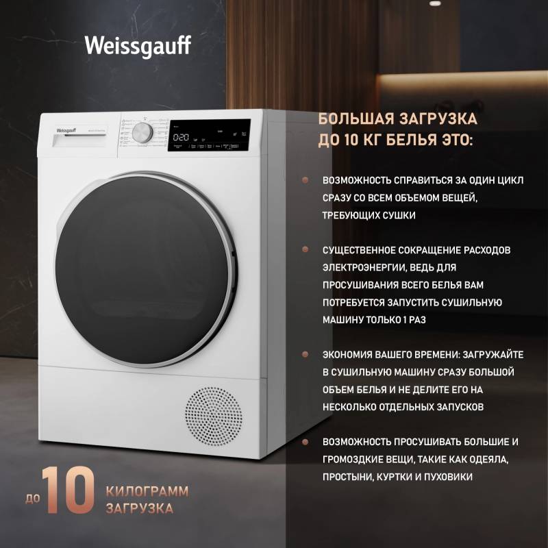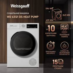 Сушильная машина Weissgauff WD 63121 DS Heat Pump кл.энер.:A++ макс.загр.:15кг белый (436256)