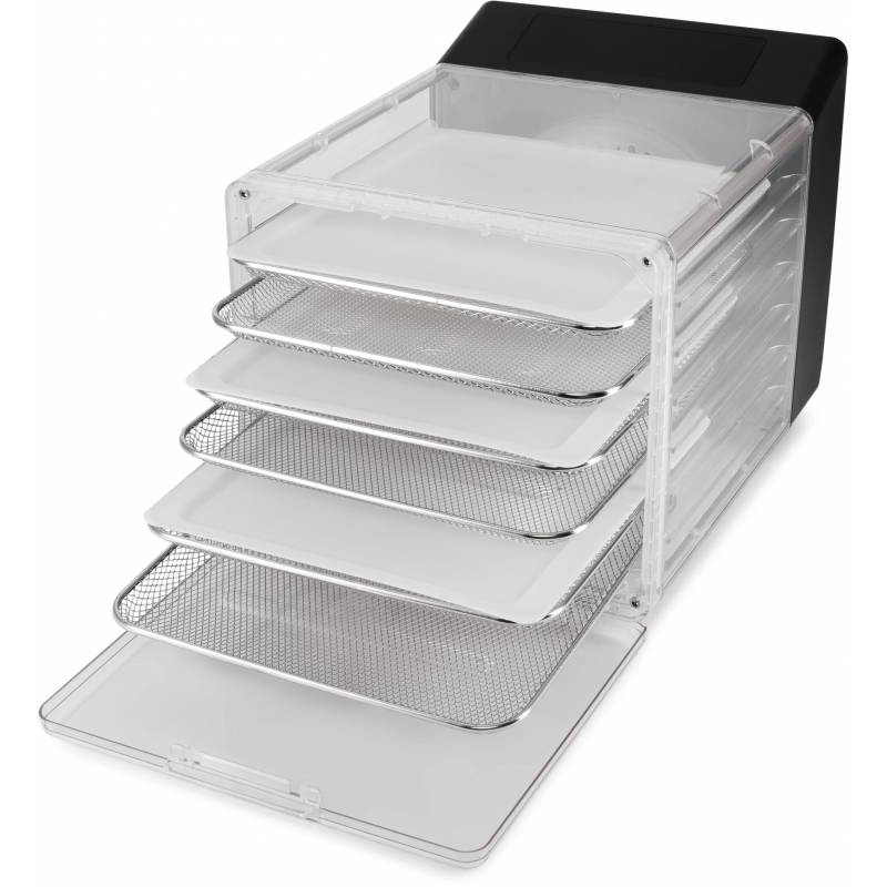 - Разборный корпус для компактного хранения. Прозрачный корпус для визуального контроля за сушкой. Откидная дверца для удобства загрузки и выгрузки.В собранном виде Х литров, и очень компактная в разобранном ХсмХсмХсм.
