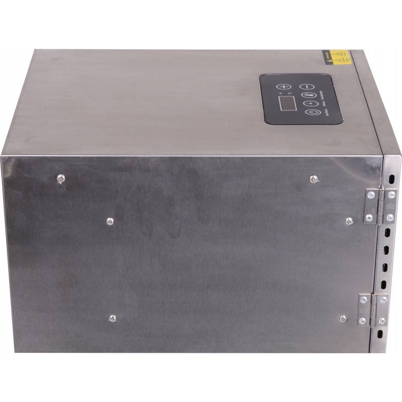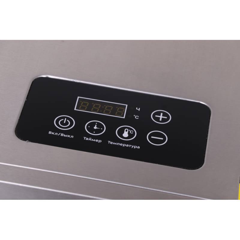 - На сушилке можно установить температуру сушки в диапазоне 30-90 °C с шагом 1 °C. Прибор также оснащён таймером до 24 часов работы с шагом 30 мин. Выбранные настройки отображаются на LED-дисплее. Их можно менять в процессе сушки, не прерывая работу.