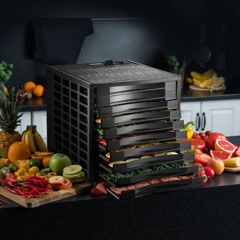 - "1. Сушилка — 1 шт.2. Пластиковый сетчатый поддон — 10 шт.3. Руководство по эксплуатации — 1 шт.4. Коллекционный магнит — 1 шт.**опционально"