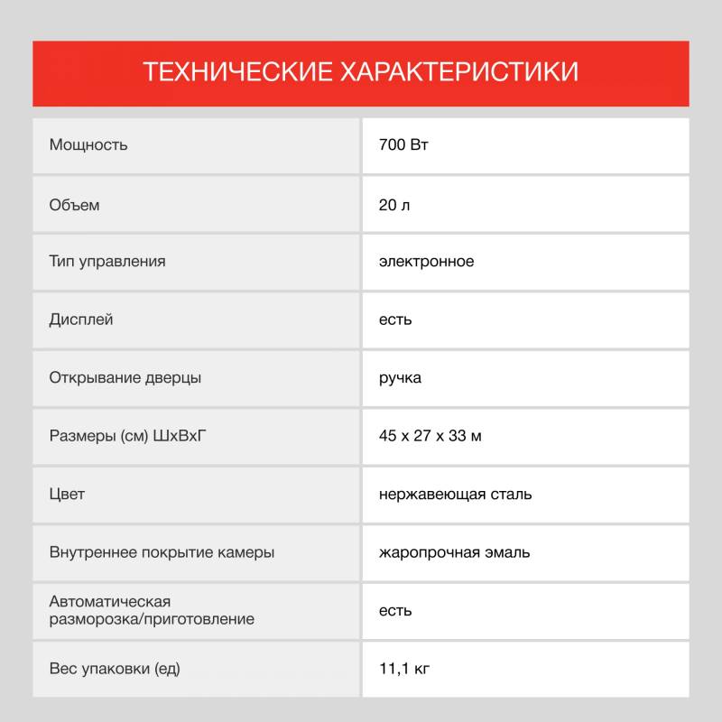 - автоматическая разморозка, автоматическое приготовление, соло