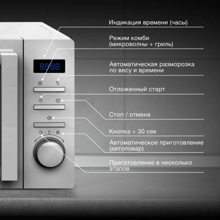 - автоматическая разморозка, автоматический разогрев, автоматическое приготовление, гриль