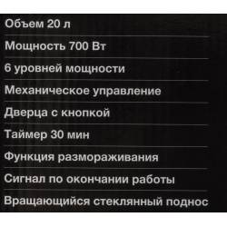 Микроволновая Печь Hyundai HYM-M2003 20л. 700Вт белый
