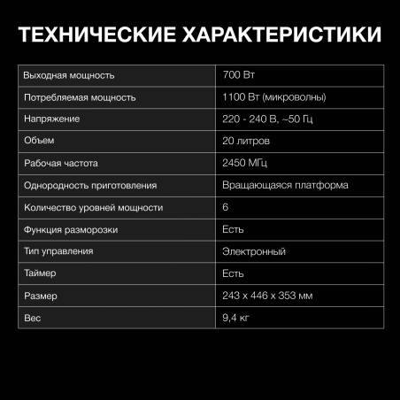 Микроволновая Печь Hyundai HYM-D3030 20л. 700Вт черный
