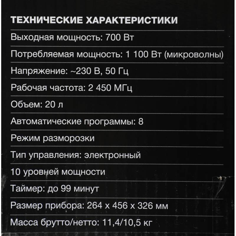 - Мощность микроволн