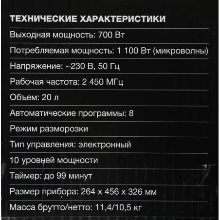 - автоматическая разморозка, автоматический разогрев, автоматическое приготовление, соло