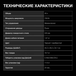 Микроволновая Печь Hyundai HYM-M2055 20л. 700Вт черный/серебристый