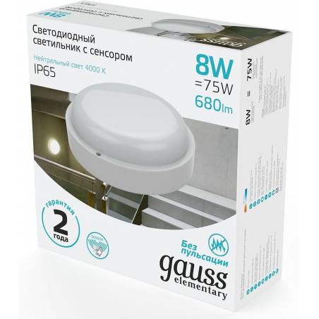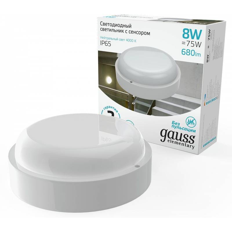 Светильник Gauss ЖКХ 126411208-S 8Вт 4000K белый датч.движ.