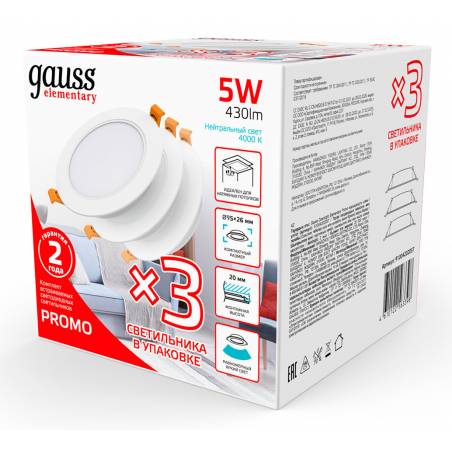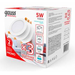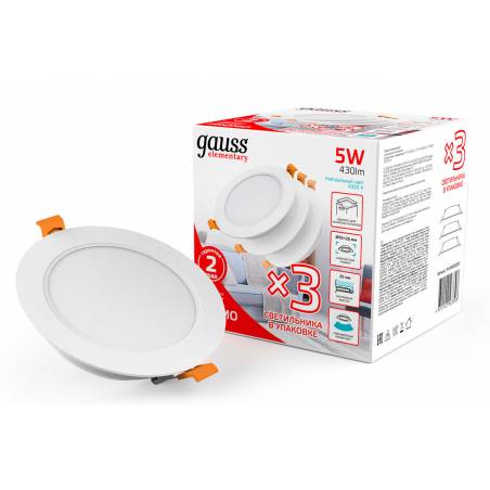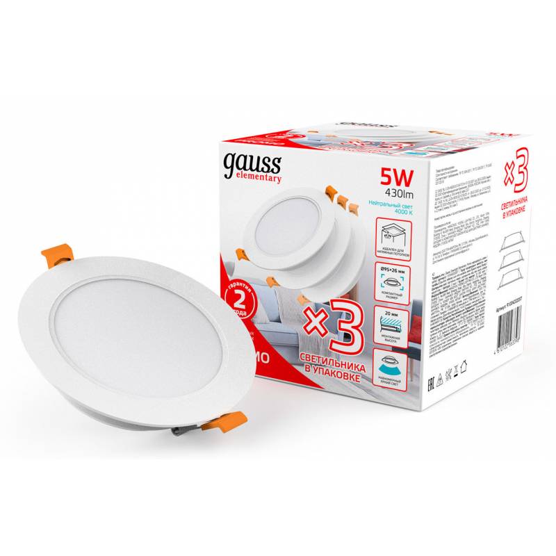 Светильник Gauss Elementary Downlight 5Вт 4000K белый круглый (9100420205T)