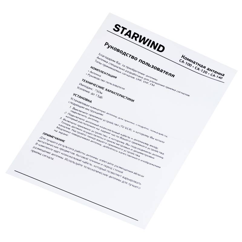 Антенна телевизионная Starwind CA-100 5дБ пассивная черный