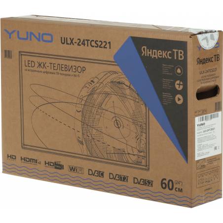 Телевизор LED Yuno 24" ULX-24TCS221 Яндекс.ТВ черный HD 50Hz DVB-T2 DVB-C DVB-S DVB-S2 WiFi Smart TV (RUS)
