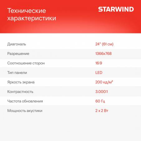 Телевизор LED Starwind 24" SW-LED24SG304 Яндекс.ТВ Slim Design черный/черный HD 60Hz DVB-T DVB-T2 DVB-C DVB-S DVB-S2 USB WiFi Sm