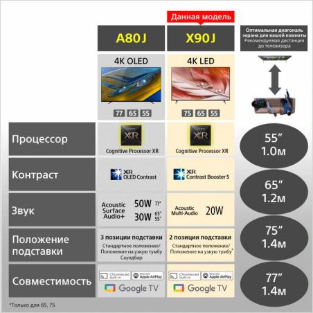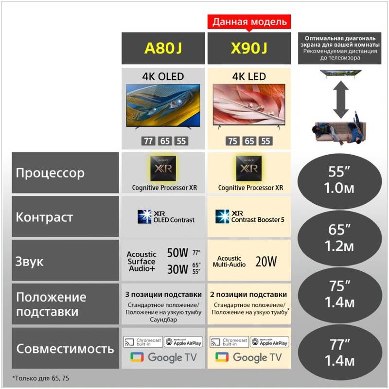 Телевизор LED Sony 75" XR-75X90J BRAVIA черный 4K Ultra HD 100Hz DVB-T DVB-T2 DVB-C DVB-S DVB-S2 USB WiFi Smart TV