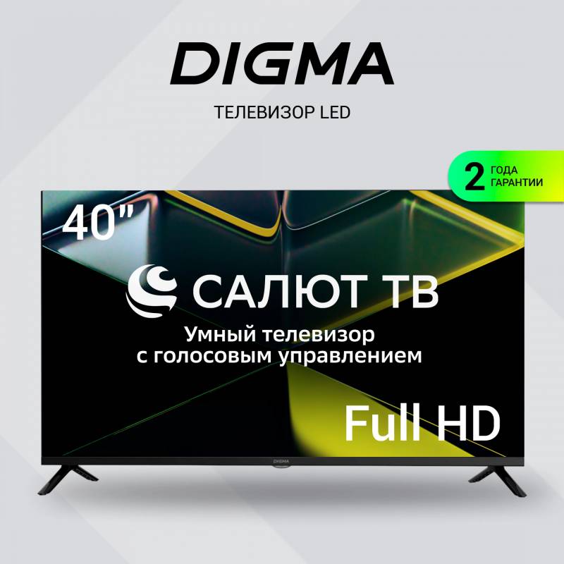 Телевизор LED Digma 40" DM-LED40SBB36 Салют ТВ Frameless Metal черный FULL HD 60Hz DVB-T DVB-T2 DVB-C DVB-S DVB-S2 USB WiFi Smar
