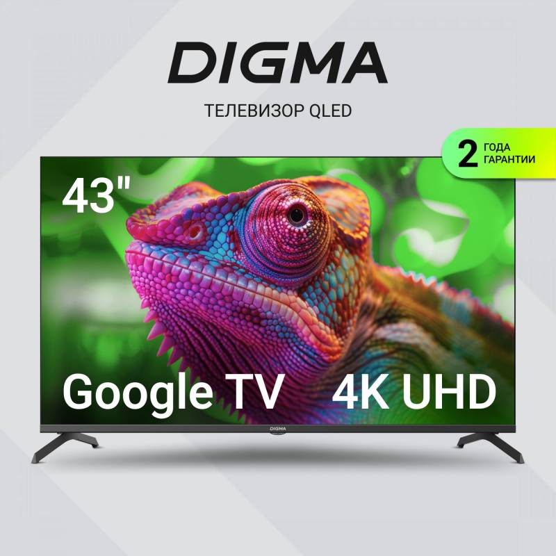 Телевизор QLED Digma 43" DM-LED43UQB31 Google TV Frameless Metal черный/черный 4K Ultra HD 60Hz MEMC DVB-T DVB-T2 DVB-C DVB-S DV