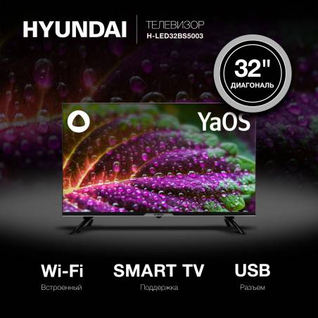 Телевизор LED Hyundai 32" H-LED32BS5003 Яндекс.ТВ Frameless черный HD 60Hz DVB-T DVB-T2 DVB-C DVB-S DVB-S2 USB WiFi Smart TV