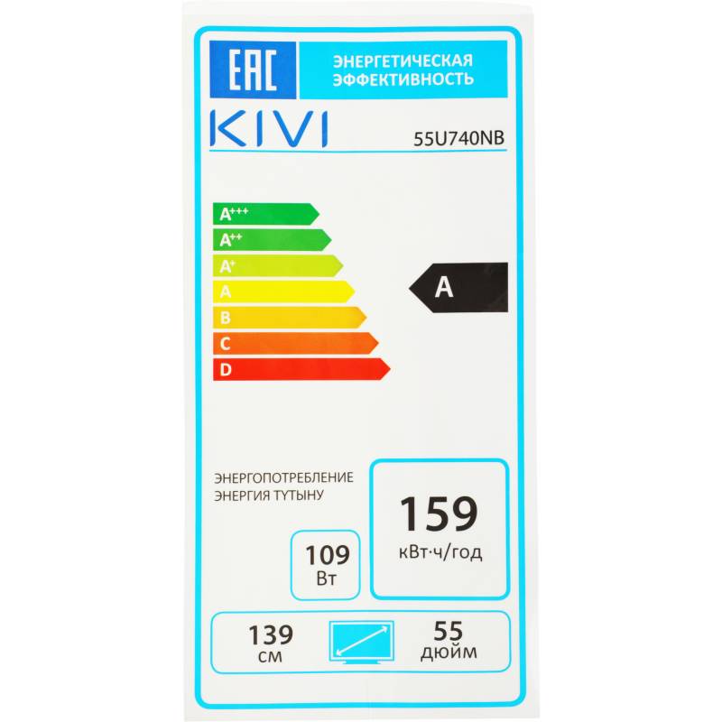 Телевизор LED Kivi 55" 55U740NB Android TV черный 4K Ultra HD 60Hz DVB-T DVB-T2 DVB-C USB WiFi Smart TV