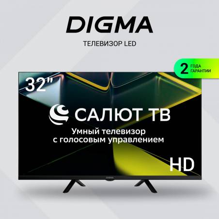 Телевизор LED Digma 32" DM-LED32SBB34 Салют ТВ Frameless Metal черный HD 60Hz DVB-T DVB-T2 DVB-C DVB-S DVB-S2 USB WiFi Smart TV