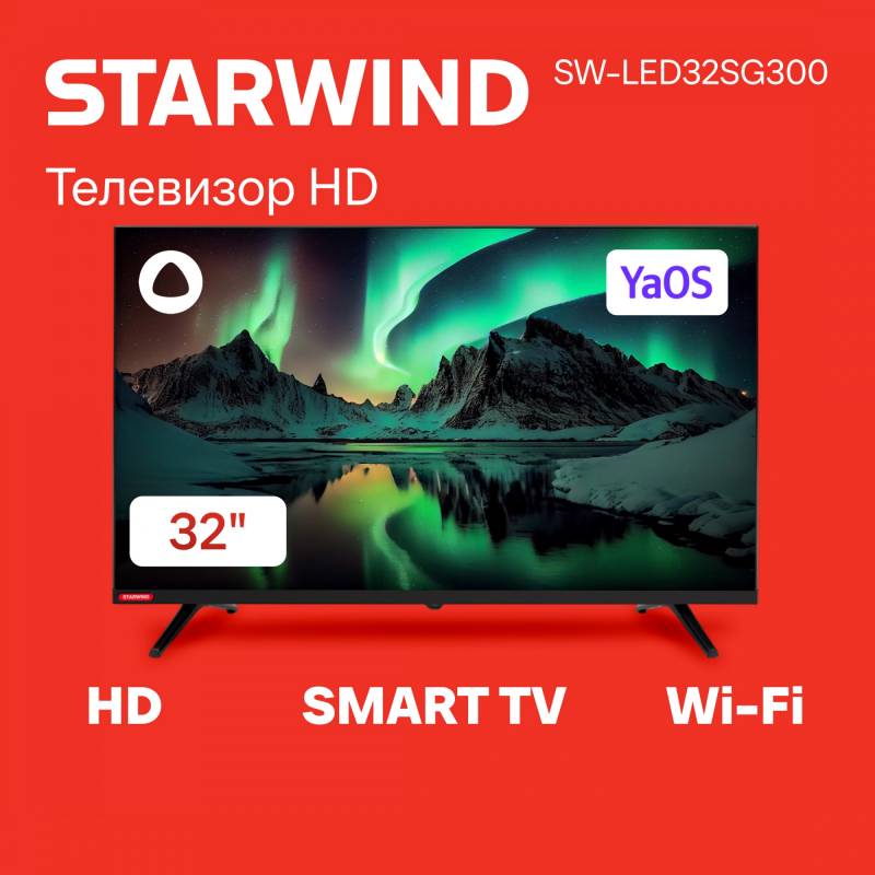 Телевизор LED Starwind 32" SW-LED32SG300 Яндекс.ТВ Frameless черный/черный HD 60Hz DVB-T DVB-T2 DVB-C DVB-S DVB-S2 USB WiFi Smar