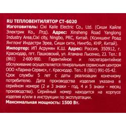 Тепловентилятор Centek CT-6020 1500Вт серый/черный