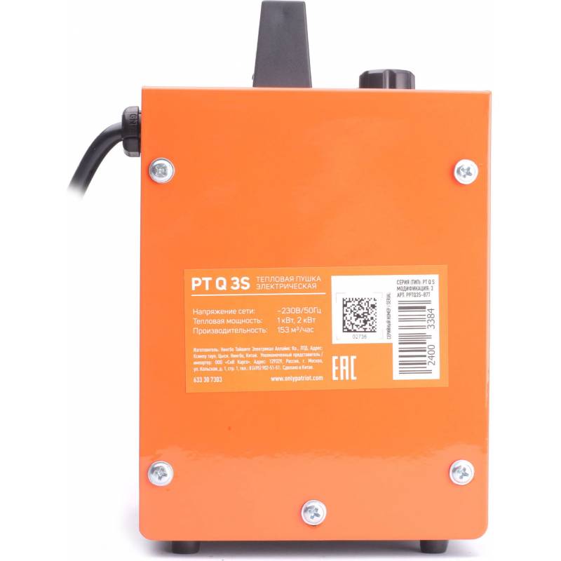 Тепловая пушка электрическая Patriot PT-Q 3 S 2000Вт оранжевый/черный