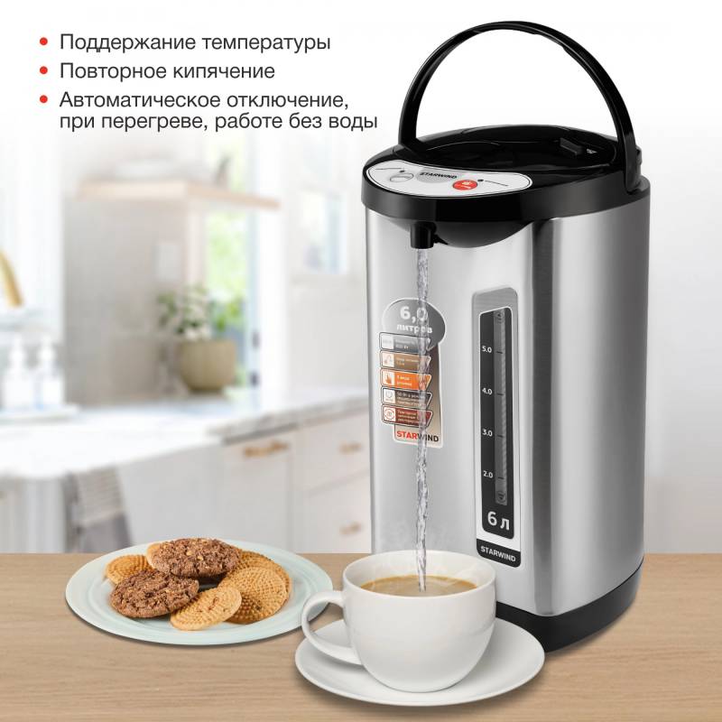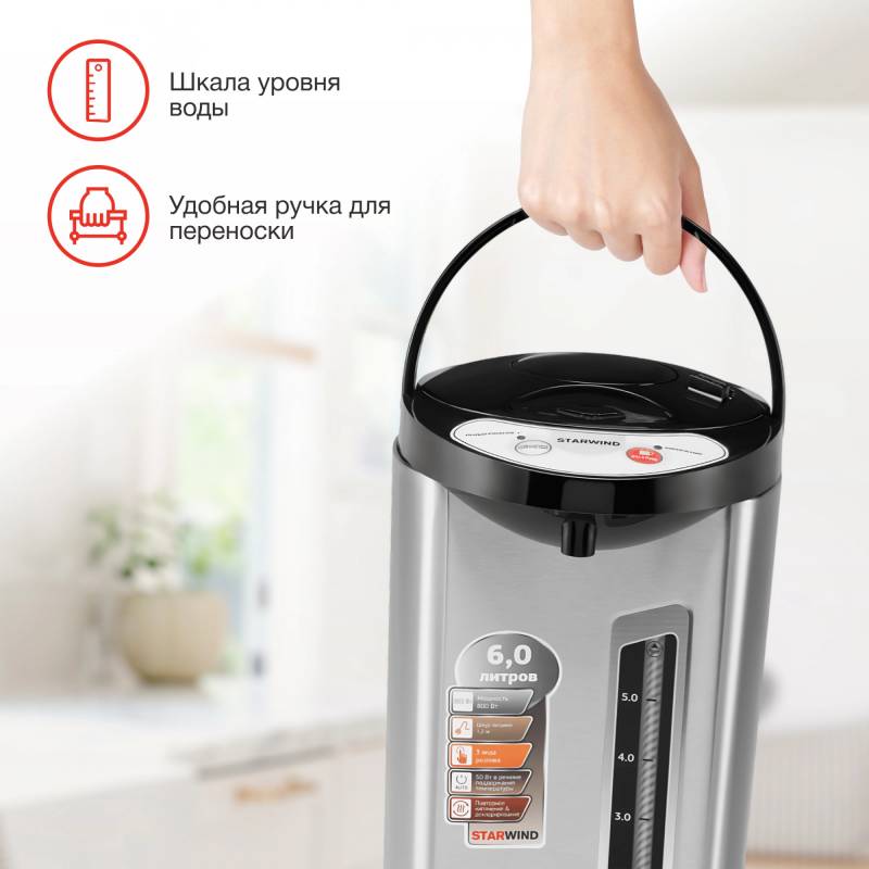 Термопот Starwind STP5401 6л. 800Вт черный/серебристый