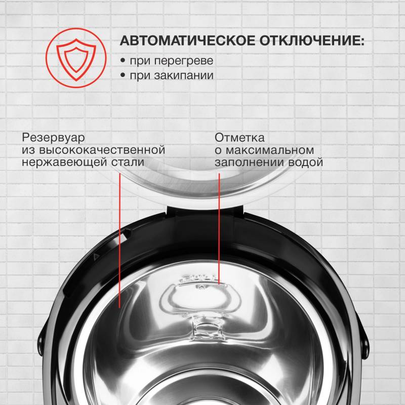 - Отключение при закипании