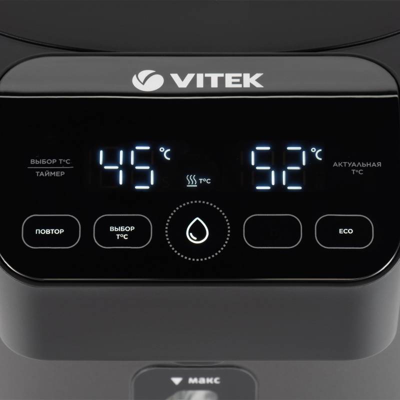 - Установка температуры для любых нужд 40-100°С и поддержание температуры, розлив по кнопке и нажатием чашкой.На дисплее отображается установки и текущая температура воды . Блокировка от случайного нажатия для защиты от ожога и детей.