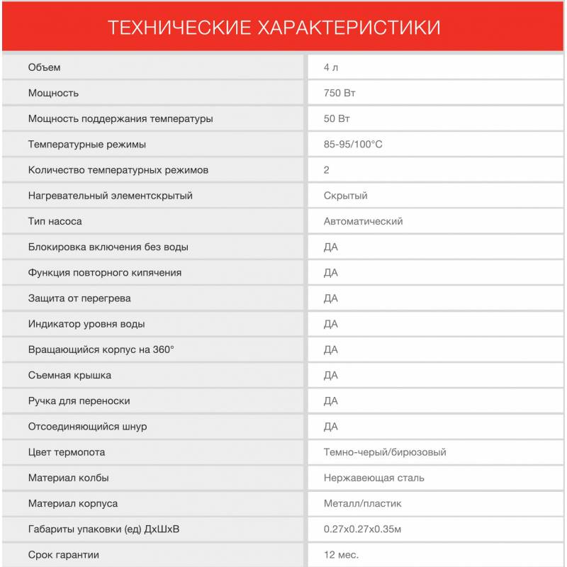 - Внутренняя колба из стали 304 – долговечная, не окисляется со временем