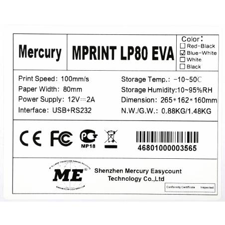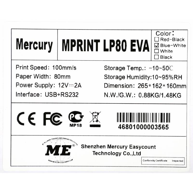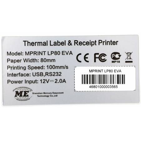 - MPRINT LP80 EVA – это современный термопринтер. Печатает на чековой термобумаге или на липких термоэтикетках. Подходит для печати чеков или этикеток для маркировки товара. Может использоваться в любой сфере: в магазинах, аптеках, заведениях общественн