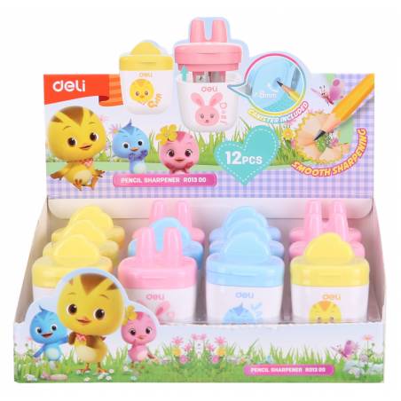 Точилка для карандашей ручная Deli ER01300 1 отверстие пластик ассорти дисплей