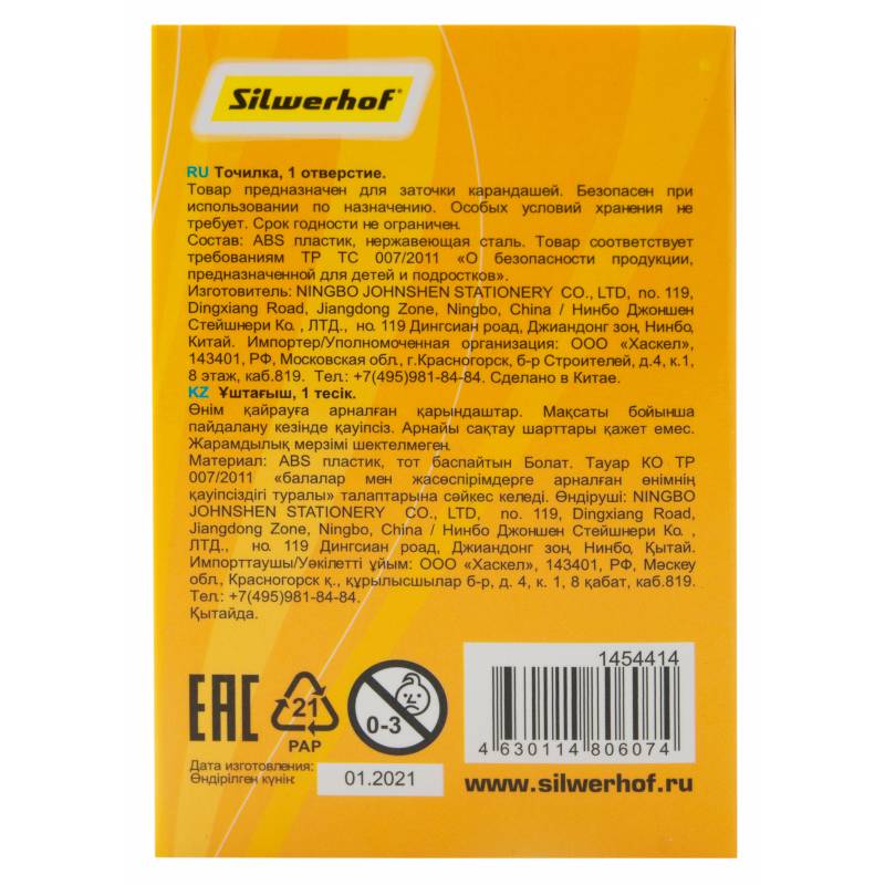Точилка для карандашей ручная Silwerhof Savanna Солнечная коллекция 1 отверстие пластик ассорти коробка