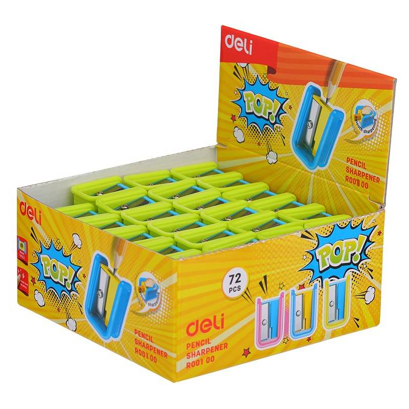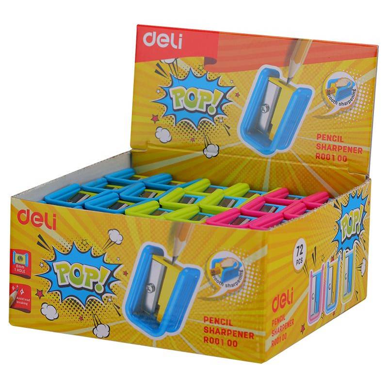 Точилка для карандашей ручная Deli ER00100 PoP 1 отверстие пластик ассорти дисплей
