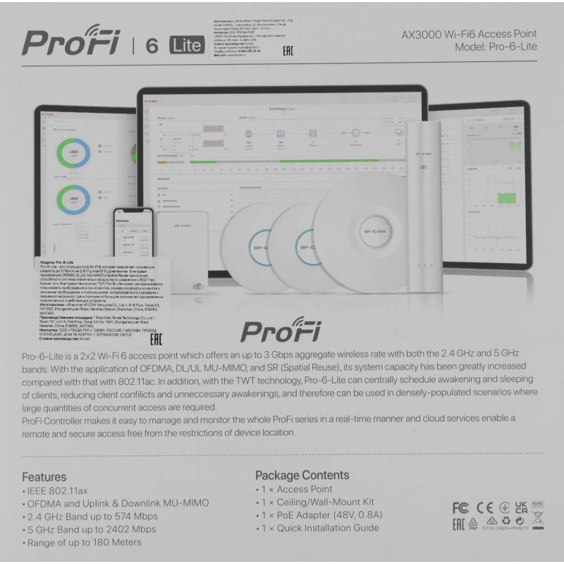 Точка доступа IP-Com Pro-6-Lite AX3000 10/100/1000BASE-TX/Wi-Fi белый