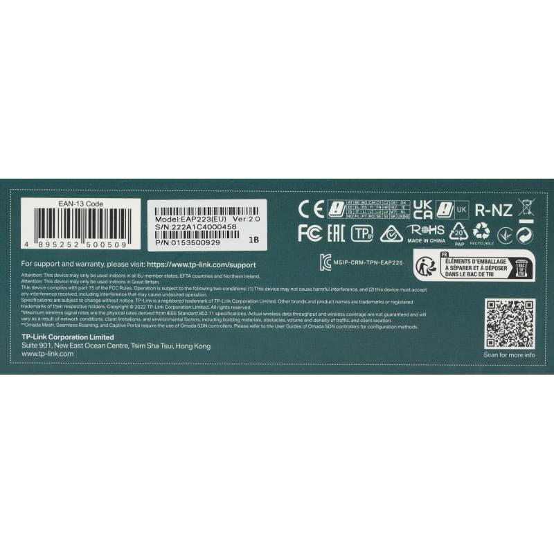 Точка доступа TP-Link EAP223 AC1350 10/100/1000BASE-TX белый