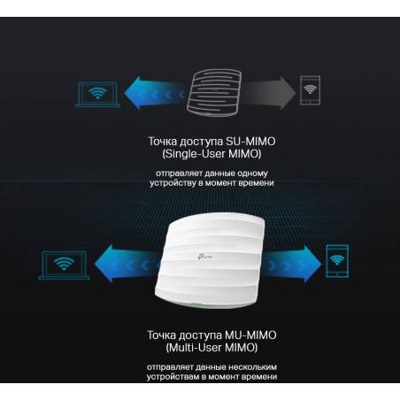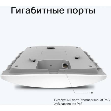 - AC1350 Беспроводная двухдиапазонная гигабитная потолочная точка доступа. Скорость до 1317 Мбит/с в двух диапазонах: до 450 Мбит/с на 2,4 ГГц и до 867 Мбит/с на 5 ГГц. Программное обеспечение EAP Controller для лёгкого управления множеством точек досту