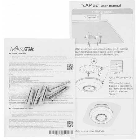 - MikroTik cAP ac - эффективная и мощная беспроводная точка доступа, которая будет отлично смотреться как на стене, так и на потолке. Радиомодуль 802.11ac MIMO 2х2 поддерживает одновременную работу в двух диапазонах (2.4 и 5 ГГц).