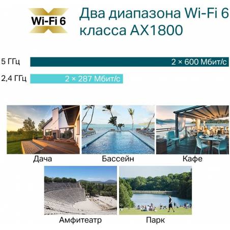 - Высокая эффективность: OFDMA и MU-MIMO позволят подключать больше устройств без задержек и потери скоростиБольшая зона покрытия: мощный усилитель и антенны