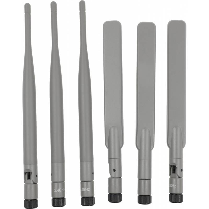 - Три антенны с коэффициентом усиления 4 dBi для работы в диапазоне частот 2,4835 ГГц. Три антенны с коэффициентом усиления 6 dBi для работы в диапазоне частот 5 ГГц