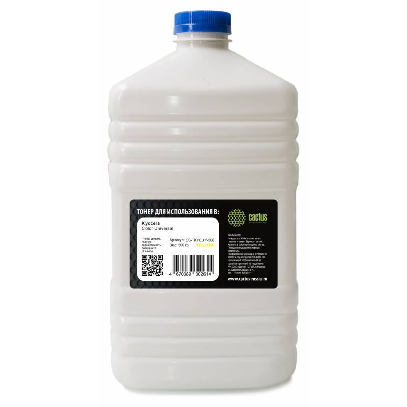 Тонер Cactus CS-TKYCUY-500 желтый флакон 500гр. для принтера Kyocera Color Universal TK-5хх/5270/8xx/8115/8305