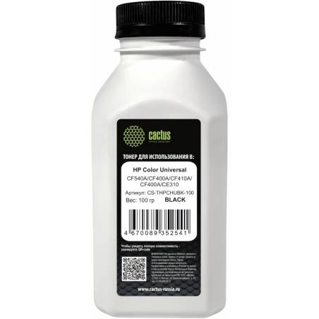 Тонер Cactus CS-THPCHUBK-100 черный флакон 100гр. для принтера HP Color Universal CF540A/CF400A/CF410A/CF400A/CE310