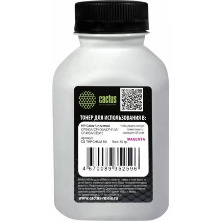 Тонер Cactus CS-THPCHUM-50 пурпурный флакон 50гр. для принтера HP Color Universal CF540A/CF400A/CF410A/CF400A/CE310