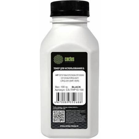 Тонер Cactus CS-THP10-100 черный флакон 100гр. для принтера HP CF218A/CF230A/CF230X/CF233A/CRG-047/CRG-051( MR VER)