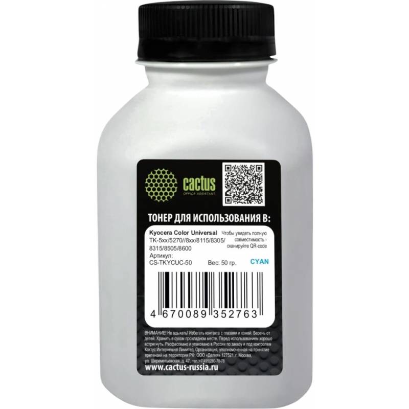 Тонер Cactus CS-TKYCUC-50 голубой флакон 50гр. для принтера Kyocera Color Universal TK-5хх/5270/8xx/8115/8305/8315/8505/8600