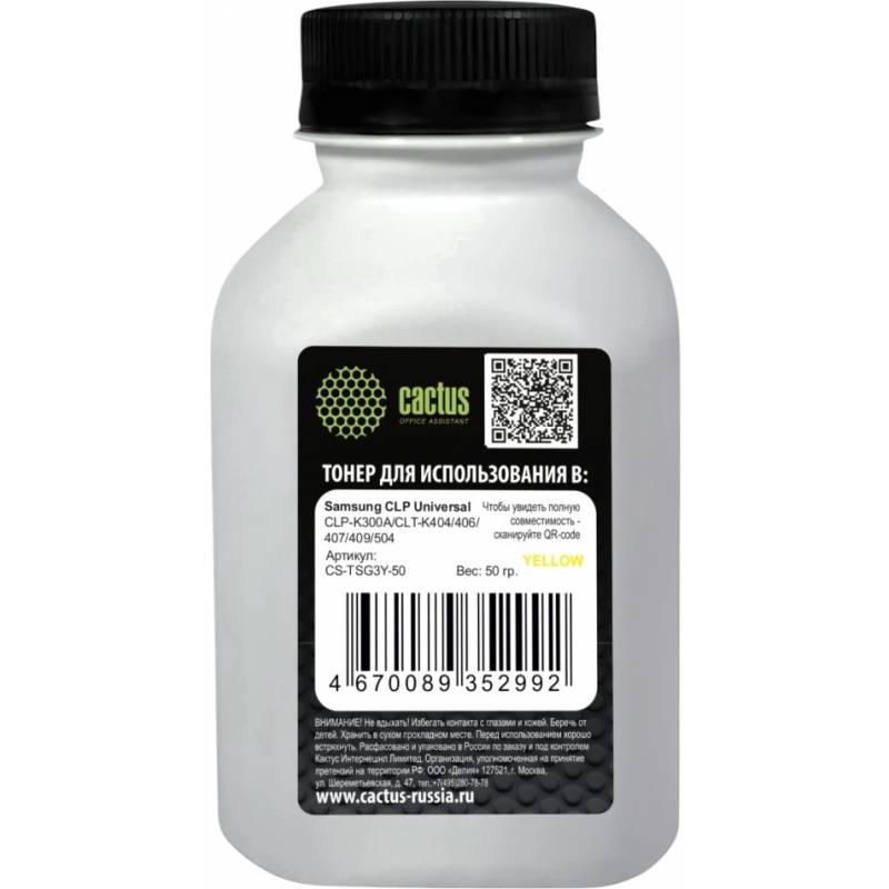 Тонер Cactus CS-TSG3Y-50 желтый флакон 50гр. для принтера Samsung CLP Universal CLP-K300A/CLT-K404/406/407/409/504
