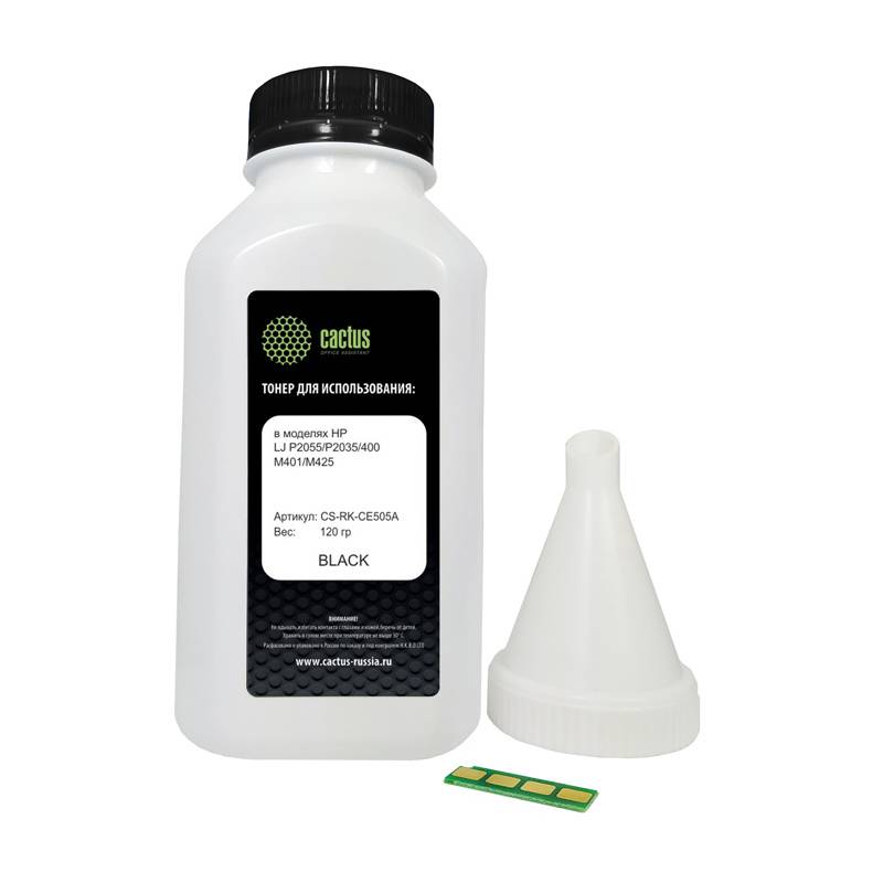 Тонер Cactus CS-RK-CE505A черный флакон 120гр. (в компл.:чип) для принтера HP LJ P2055/P2035/400/M401/M425