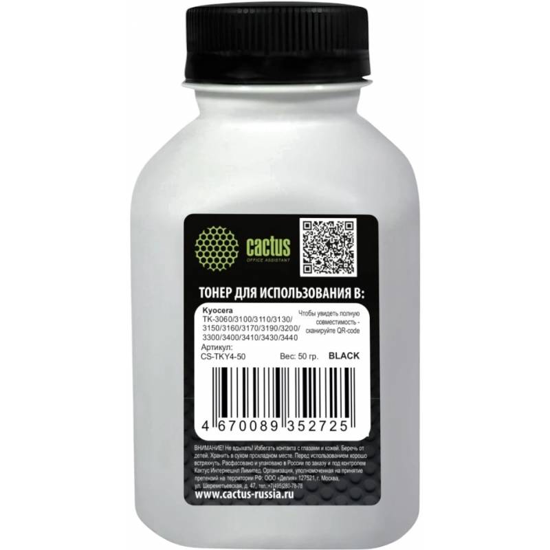 Тонер Cactus CS-TKY4-50 черный флакон 50гр. для принтера Kyocera TK-3060/3100/3110/3130/3150/3160/3170/3190/3200/3300/3400/3410/