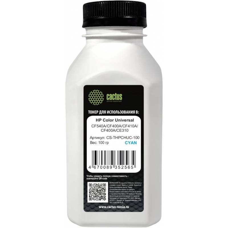 Тонер Cactus CS-THPCHUС-100 голубой флакон 100гр. для принтера HP Color Universal CF540A/CF400A/CF410A/CF400A/CE310